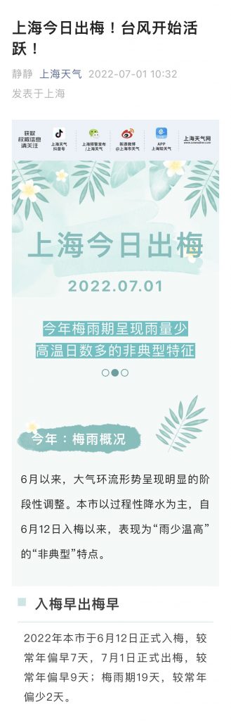 Jul 4, 2022除了 #封控 期間5月份有一個禮拜感覺比較潮濕外,6月份整體上濕度不大,幾乎沒下雨,應該算不上有 #黃梅天 。